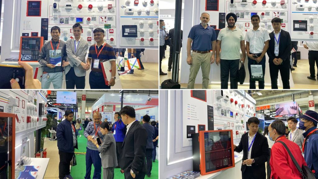 展位上,中消云智慧消防圍繞“無線火災探測報警系統、燃氣安全監測系統、用電安全監測系統、消防遠程監控”幾大場景,展出全系列最新智能終端設備,組成了應用于不同場景的一整套智慧消防系統解決方案。泰和安充分發揮產品線齊全優勢,各系統產品覆蓋火災預警、報警、疏散、滅火全流程,吸氣式、FosLink無線報警、可燃氣體等20余款新產品首次公開亮相,備受矚目。